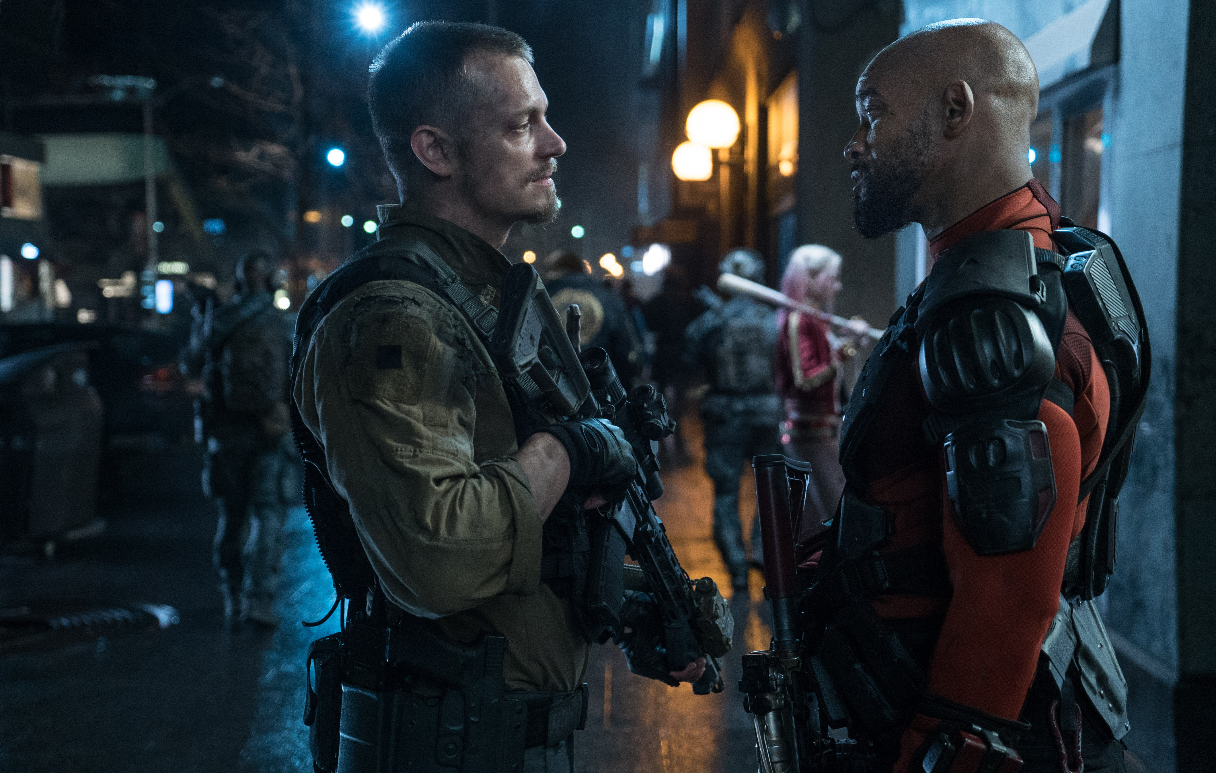 Most of the main characters got at least one moment to shine, and there was something memorable about all of them. Margot Robbie IS Harley Quinn, she was absolutely fantastic in the role, she’s one of the most entertaining characters to watch in the film. Will Smith as Deadshot surprised me, I didn’t really know what to expect from him but he was one of the showstealers, he had charisma, he was nice to watch, he was believable in the role, he was great. Another surprising performance was Joel Kinnaman as Rick Flag. That was a role that could’ve just been a generic soldier character but Kinnamon did a great job and elevated the role, he and Smith really played off each other and was one of the most entertaining dynamics of the film. Jai Courtney as Captain Boomerang was great, he was really the comic relief of the movie and was absolutely hilarious. He finally found a role that worked out for him. Another stand out was Jay Hernandez as El Diablo, who was also a surprise for me, he is given quite a bit of depth and probably one of the most likable characters in the film. There is a scene involving his backstory which was done especially and incredibly well. The other squad members, Katana (Karen Fukuhara), and Killer Croc (Adewale Akinnuoye-Abaje) are also great in their roles. And the final member Slipknot…. well there’s not much to say about him, not spoiling anything.