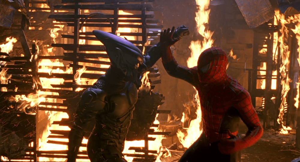 Tobey Maguire is really good as Spider-Man, he perfectly delivers on the geeky side of Peter Parker, and is quite likable in his role. With that said, he wasn’t always great, but that’s to do with the writing. After Uncle Ben’s death and after he becomes Spider-Man, his character development seems to almost stop. In 2 and 3 he is given more to do. I didn’t feel that he was quite a 3 dimensional character yet, but he still worked well for the movie. Kirsten Dunst is Mary Jane Watson, Dunst is a great actress but in these movies, she’s sadly not given much to work with, especially this movie. Her character isn’t really that great, and the awkward dialogue between her and Maguire makes it hard to see any believable chemistry. But she does the best she can. Willem Dafoe is Norman Osborn/Green Goblin and I have to say that is one of the best comic book movie casting decisions ever made. As for what I think of the performance itself… I have mixed feelings. I know plenty of people love Green Goblin in this movie, but I won’t lie, I’m not a big fan of him. I really liked Willem Dafoe when he was Norman Osborn. However when he’s Green Goblin he goes really over the top, and it’s just hard to take him seriously (especially when he’s in the Goblin suit). He’s literally singing “Itsy bitsy spider”, saying cliché 1960s era villain lines, all the things that comic book movie villains do and say. Even as Norman, he has some goofy moments when he is talking to himself in the mirror or literally talking to the Goblin mask (which is just sitting on a chair and the Goblin voice is coming out of it), it’s hard to not find these scenes unintentionally hilarious. It wouldn’t be so bad except it feels like the film wants to take Goblin seriously as a villain, most of the time he just comes across as a Power Rangers villain. I’m not at any point intimidated by him, I find him ridiculous. I will say at the very least, Dafoe seemed to be having an absolute blast going absolute nuts. And to be fair, Goblin does get a couple great scenes, one on a rooftop, and the other is the final fight with Spider-Man. We also get supporting performances from James Franco, J.K. Simmons and others which were also pretty good. And we get a Bruce Campbell cameo, which is always great.