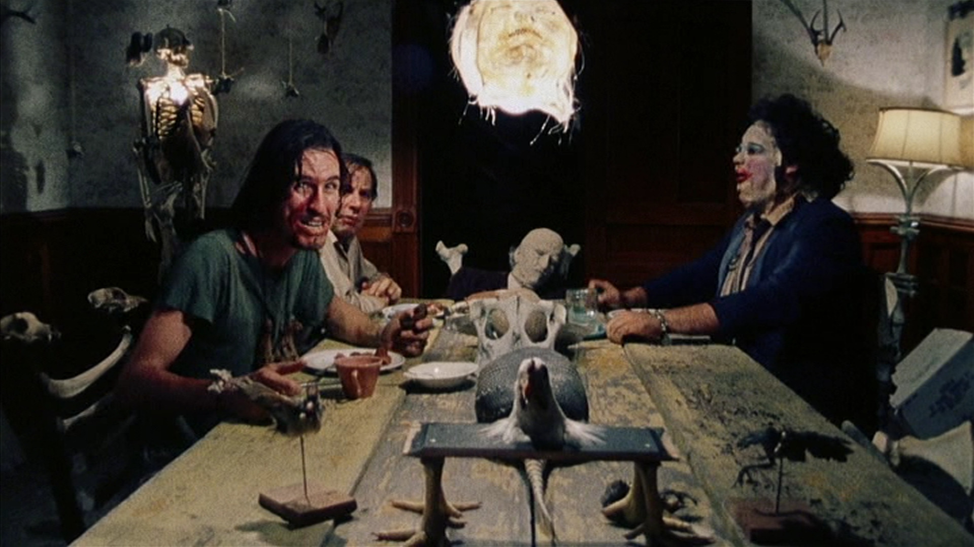 The acting was pretty good by everyone. We don’t really know much about the main characters but they do pretty well with what they’ve got, particularly Marilyn Burns, especially in the later scenes of the movies. Along with the main characters being played well, the people who played the psychopathic characters are excellent, not just Leatherface (Gunnar Hansen) although he is a standout amongst them. They were at least for me most of the scariest parts of the movie. One performance that really stood out to me was from Edwin Neal who makes his first appearance quite early on in the film. He makes such an impression.