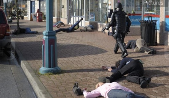 Rampage is a little slow with its buildup, in these moments it shows what drives the protagonist Bill (Brendan Fletcher) to essentially go on a killing rampage. It does get a little too preachy, political and in your face about what Uwe Boll is trying to say, there is little subtlety but it can be overlooked. In these moments, there are also parts taken from later on in the movie that were put in there that really didn’t serve much purpose (maybe just to remind us that he’s going to eventually go on a shooting rampage). Although I felt that they did that a little too much, it seemed to work fine enough. It’s once he dons the Kevlar armour that the movie really picks up. The film is not that complex and a lot of it is following Bill on his rampage but for what Rampage is going for, it succeeds pretty well at it.