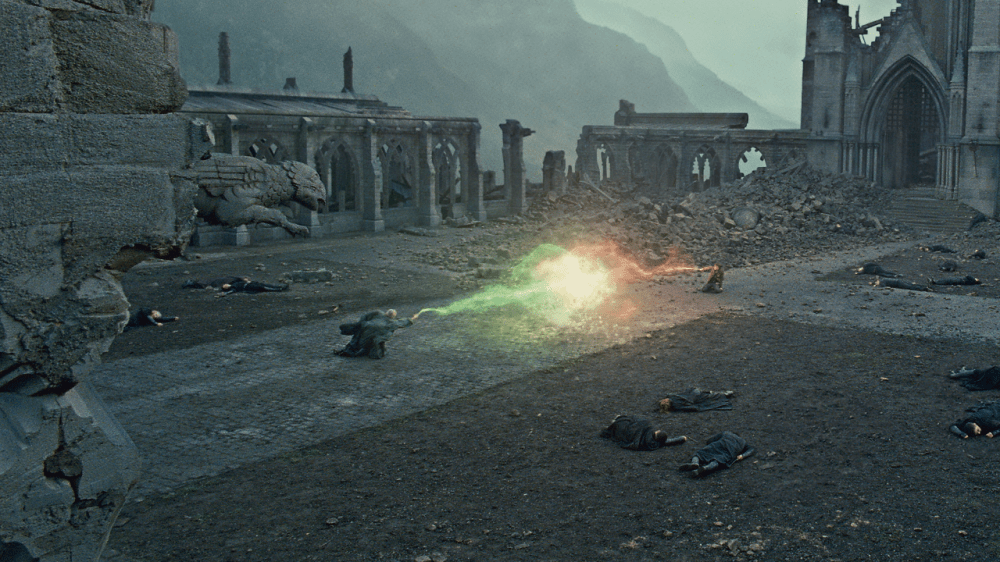 All the cast did a great job and served their purpose well. Harry, Ron and Hermione (Daniel Radcliffe, Rupert Grint and Emma Watson) are all great again, and all get to do major things in the movie. Like in Part 1, a lot of the supporting characters are pushed to the back and there’s so many of them but they all do great. Maggie Smith as Minerva McGonagall, Helena Bonham Carter as Bellatrix Lestrange, Tom Felton as Draco Malfoy, David Thewlis as Remus Lupin and more all do fantastic in their roles here. We also get to see the full character of Alan Rickman’s Severus Snape. He’s not in a ton of scenes but he is fantastic in them and deliver on some of the best scenes of the movie. Ralph Fiennes is once again great as Voldemort, still throwing himself into a rather pure evil role, but playing it so convincingly and with so much menace that it kind of works. He’s a little over the top at some points, particularly in one scene in the third act before the final confrontation, but I can’t see Voldemort being portrayed any better than how Fiennes did it.