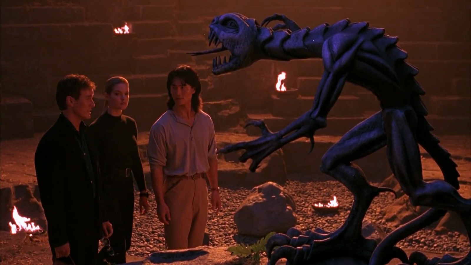 Paul W.S. Anderson isn’t that great of a director from what I can tell but he does enough here for Mortal Kombat to be entertaining. The stunts in the fight sequences are pretty standard and nothing special. Thankfully you can actually see what’s going on and its not edited so that they’re incomprehensible, and at times they are over the top enough that they are entertaining. Despite the fight scenes being very over the top however, there isn’t really any blood whatsoever. This is a little bit of a problem, as the reason that the Mortal Kombat games got noticed so much (at least in the 90s) was the blood and gore, so it feels like the movie is really lacking something. No doubt this was a studio mandated decision to increase the amount of viewers as Paul W.S. Anderson had directed some bloody and violent movies. Some of the visual effects are decent enough (for its time at least), other effects are pretty terrible. The character of Goro (who is a monsterlike character with 4 arms) is completely practical, and while I’m fully aware that it would look terrible had it been in CGI, it looks very clunky and fake. There is a lot of slow motion used, to the point of ridiculousness. The music was good and really add to the movies and scenes, especially the main theme.