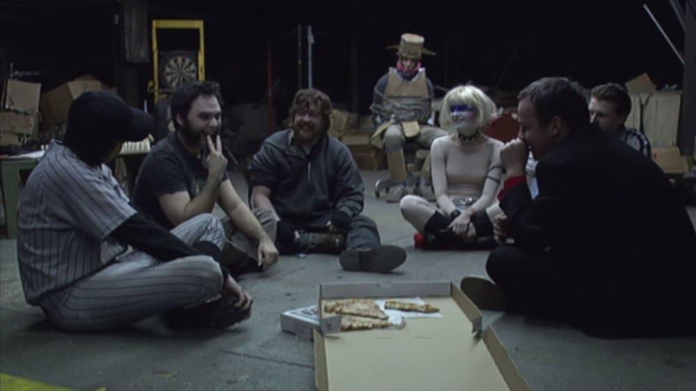 It’s pretty clear watching Murder Party that this is Jeremy Saulnier’s first film. When you read the summary and knowing Saulnier was the guy who directed Green Room and then watching Murder Party, you might be a little let down. However it is worth noting that this was pretty much a student film. Chris Sharp, Macon Blair, Jeremy Saulnier and some of the cast of Murder Party filmed a lot of short movies together growing up. In the mid 2000s they started their first feature film together (this movie). Knowing that its an experimental film and also knowing the backstory of the movie,