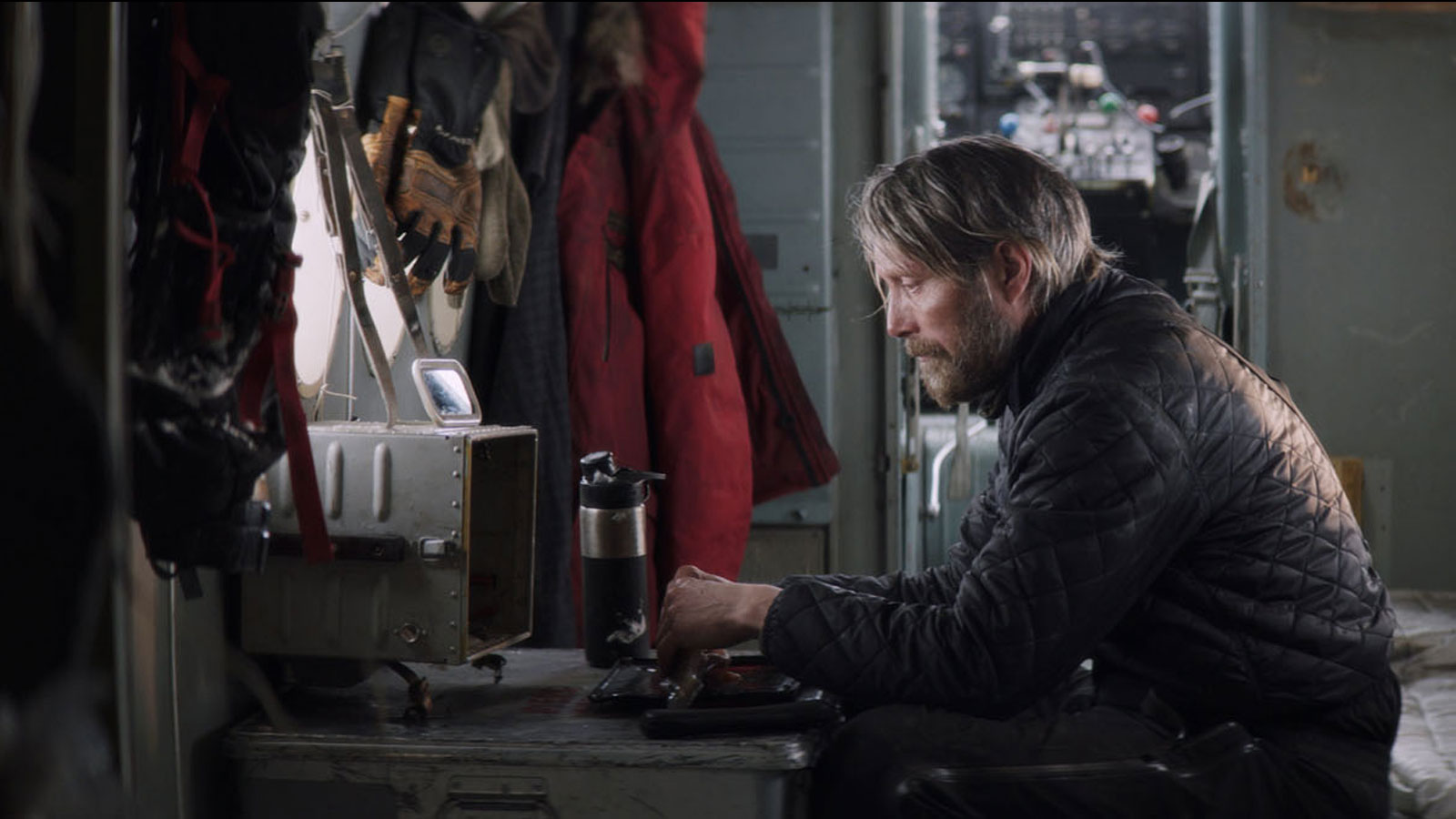 A man (Mads Mikkelsen) stranded in the Arctic after an airplane crash must decide whether to remain in the relative safety of his makeshift camp or to embark on a deadly trek through the unknown in hopes of making it out alive.