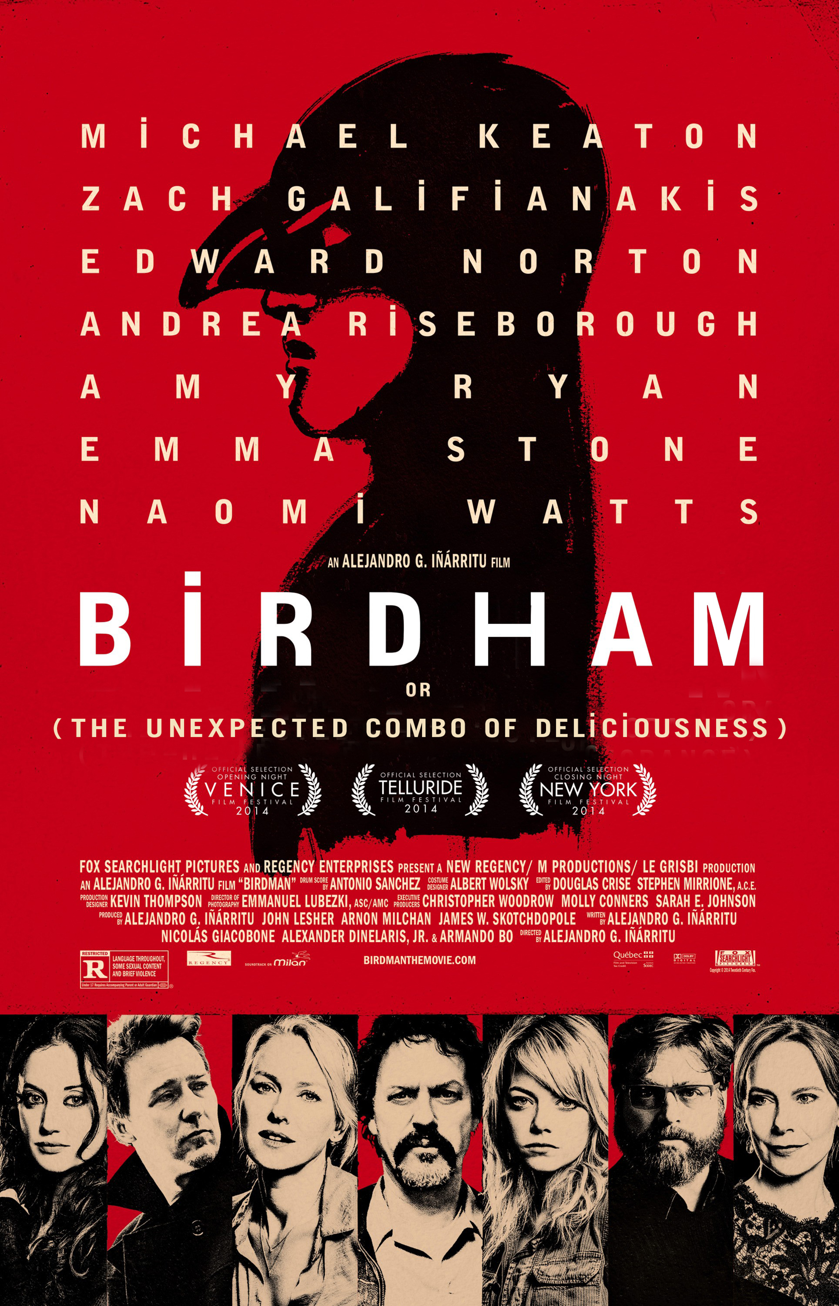 Former cinema superhero Riggan Thomson (Michael Keaton) is mounting an ambitious Broadway production that he hopes will breathe new life into his stagnant career. It’s risky, but he hopes that his creative gamble will prove that he’s a real artist and not just a washed-up movie star. As opening night approaches, a castmate is injured, forcing Riggan to hire an actor (Edward Norton) who is guaranteed to shake things up. Meanwhile, Riggan must deal with his girlfriend (Andrea Riseborough), daughter (Emma Stone) and ex-wife (Amy Ryan).