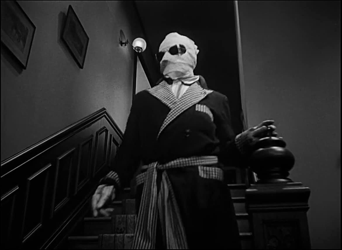 Working in Dr. Cranley’s laboratory, scientist Jack Griffin was always given the latitude to conduct some of his own experiments. His sudden departure, however, has Cranley’s daughter Flora worried about him. Griffin has taken a room at the nearby Lion’s Head Inn, hoping to reverse an experiment he conducted on himself that made him invisible. But the experimental drug has also warped his mind, making him aggressive and dangerous. He’s prepared to do whatever it takes to restore his appearance.