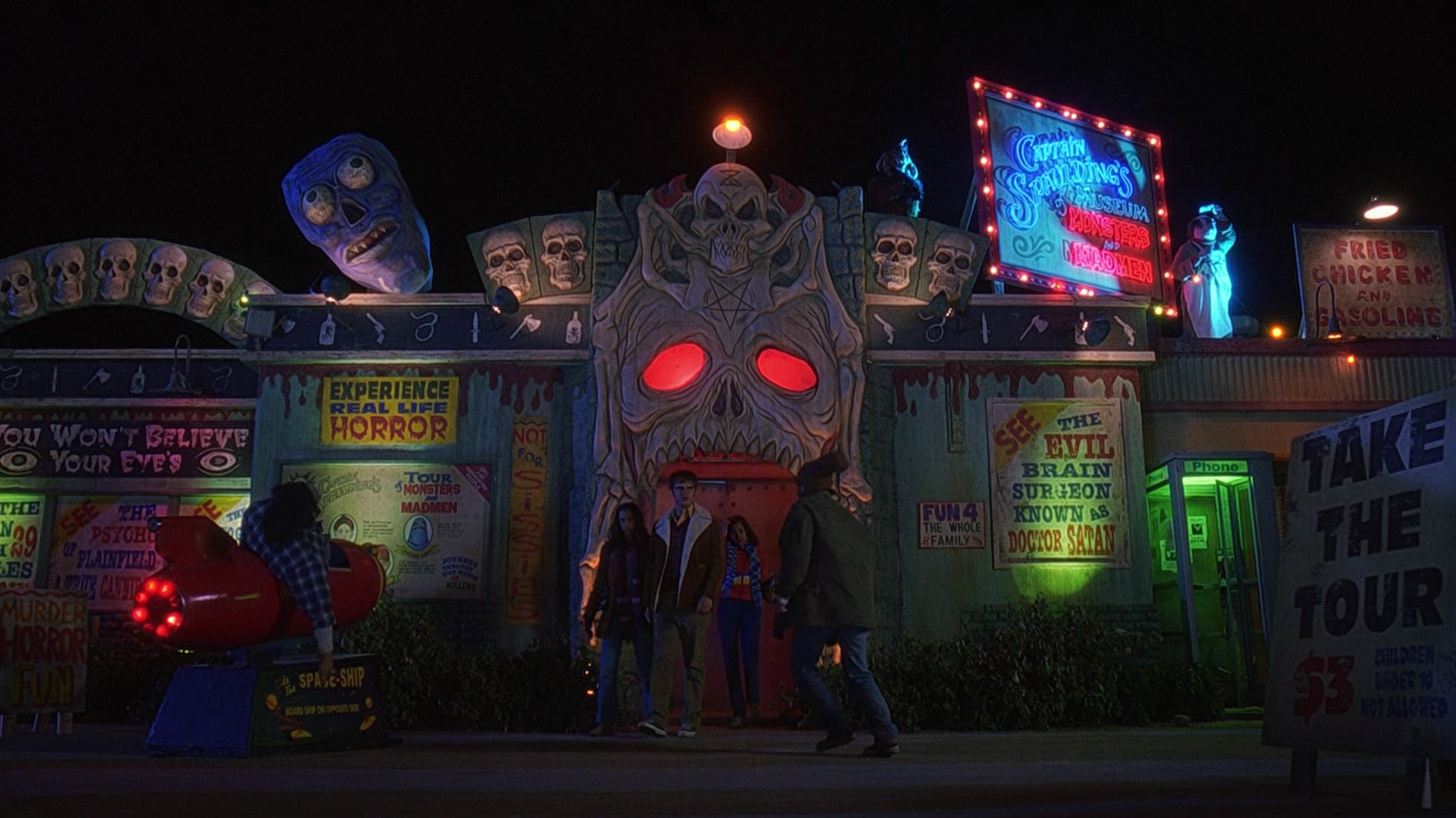 This is Rob Zombie’s directorial debut and for all its faults, with House of 1000 Corpses, he quickly establishes a very strong and distinct style not seen by any other filmmaker. Still, you can tell that he’s experimenting a lot with his style here. Zombie clearly has a love for 1970s horror grindhouse, and he captures that aesthetic perfectly. The use of grainy camera footage, the production, costume and set design, hairstyling and makeup are all on point. It is a really filthy and gritty film, while also being an incredibly colourful film. The crazed editing with weird footage does threw me off a little but does elevate the surreal elements, even if some of it could be mistaken for a Rob Zombie music video. Unsurprisingly, it also brings the gore that you would expect given the title. The music is co-scored by Rob Zombie (of course), and you’ll particularly like it if you already enjoy Zombie’s music.