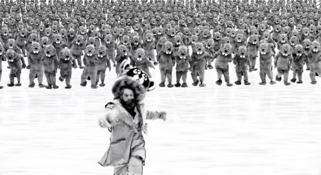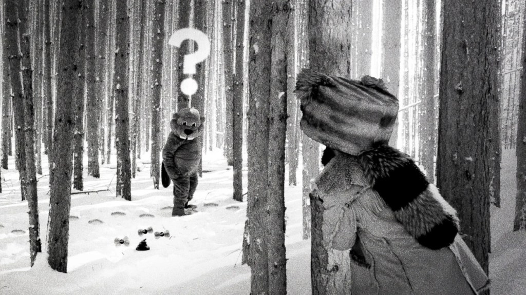 Hundreds of Beavers has a straightforward plot and is largely dialogue free, and it’s very easy to follow what’s happening on screen. With the black and white cinematography, slapstick humour and minimal dialogue, it does seem like its specifically harkening back to the silent film era at first glance (specifically with Charlie Chaplin movies). However, Hundreds of Beavers is a blend of old and new influences; yes you can see Chaplin and Buster Keaton here, but you can see the more cartoonish influences (like Looney Tunes and Tom and Jerry), and even internet sketch comedy and video games. Hundreds of Beavers largely relies on visual and physical comedy is on display and it’s incredibly well done. There is such a constant stream of gags that you’d think that it would get old after the first 30 minutes, but they make it work throughout the entire near 2 hour runtime. It helps that it is paced really well, it doesn’t lose momentum and keeps things going without feeling tired. There are plenty of recurring gags, but many of them end up surprisingly serving a purpose in the plot or having some other payoff. A lot of the humour is admittedly silly, but at the same time is so smart about it. While the overall story is familiar and you can probably figure out how it ends, the places that the movie goes (as well as some of the jokes) are anything but predictable, which is why I think it’s worth going into Hundreds of Beavers knowing as little as possible.