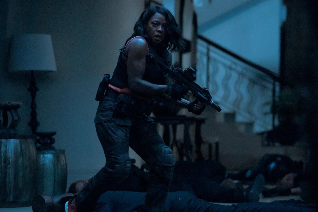 The plot is very simple: hostages are taken by terrorists, and one person has to save the day. Except this time, it has to be the president of the United States, just like Air Force One (except its Viola Davis instead of Harrison Ford). It is very cliched with very little surprises, there was even a small twist/reveal that happened in the third act that I was somehow able to call in the first act as a random guess. It does try to be a politically timely movie with deepfake AI, Bitcoin and crypto playing notable parts in the plot, but doesn’t really end up saying that much and doesn’t commit to anything. The biggest problem is that the movie is just rather forgettable. However, once the action begins, it is paced fine enough. Also, while it does generally play things seriously, there’s a lot of the movie that’s enjoyably silly and trashy.