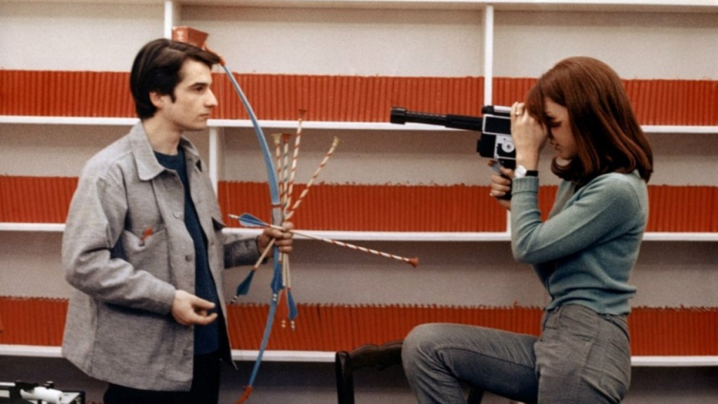 While I am mixed on the movie as a whole, I liked Jean-Luc Godard’s directing work. It is visually very nice with beautiful and colourful shots. I liked the sets and the editing was great too.